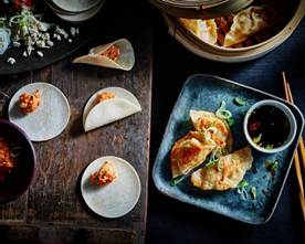 - Garneer/decoreer de dim sum met de rest van de lente-ui en serveer met de heerlijke dipsaus.
